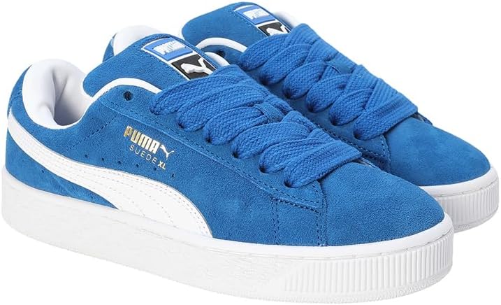 Cette réinterprétation des baskets emblématiques PUMA Suede est inspirée de notre histoire dans le breakdancing et le streetwear moderne. Les baskets Suede XL maintiennent l'ADN classique en daim et donnent au style une nouvelle touche avec un rembourrage exagéré sur le col et la languette et une semelle plus haute