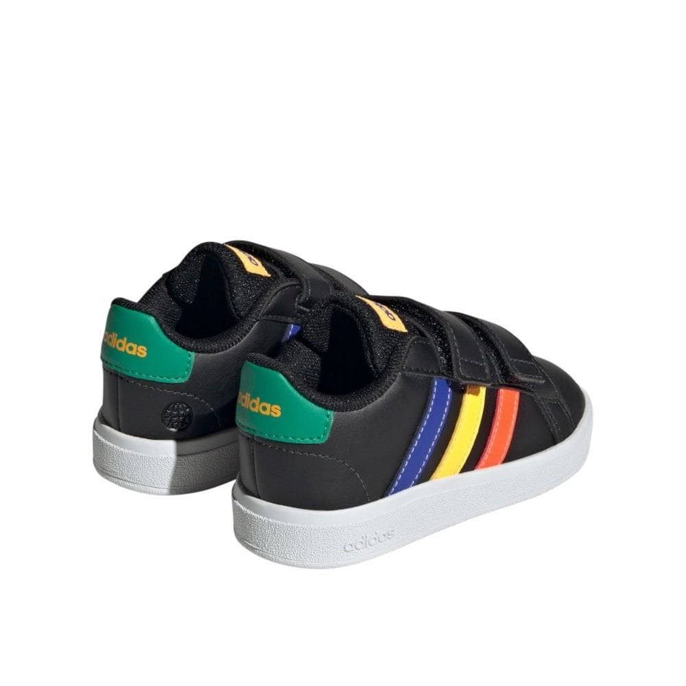 Cette chaussure adidas bébés va avec tout, de la salopette à tout ce qui se trouve dans leur dressing. La semelle cupsole résistante et les scratchs assurent un maintien optimal aux petits pieds pour passer du parc aux activités d'éveil sensoriel. Et ce n'est que leur programme du matin.