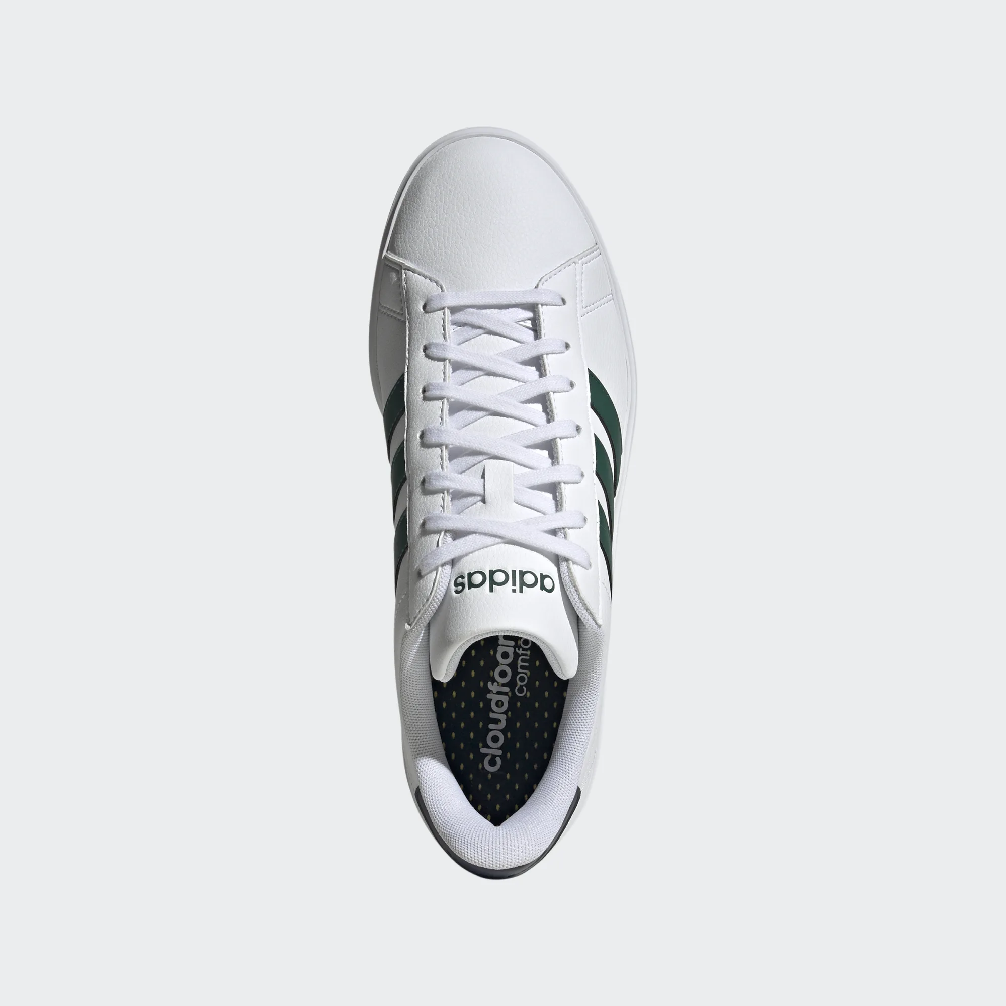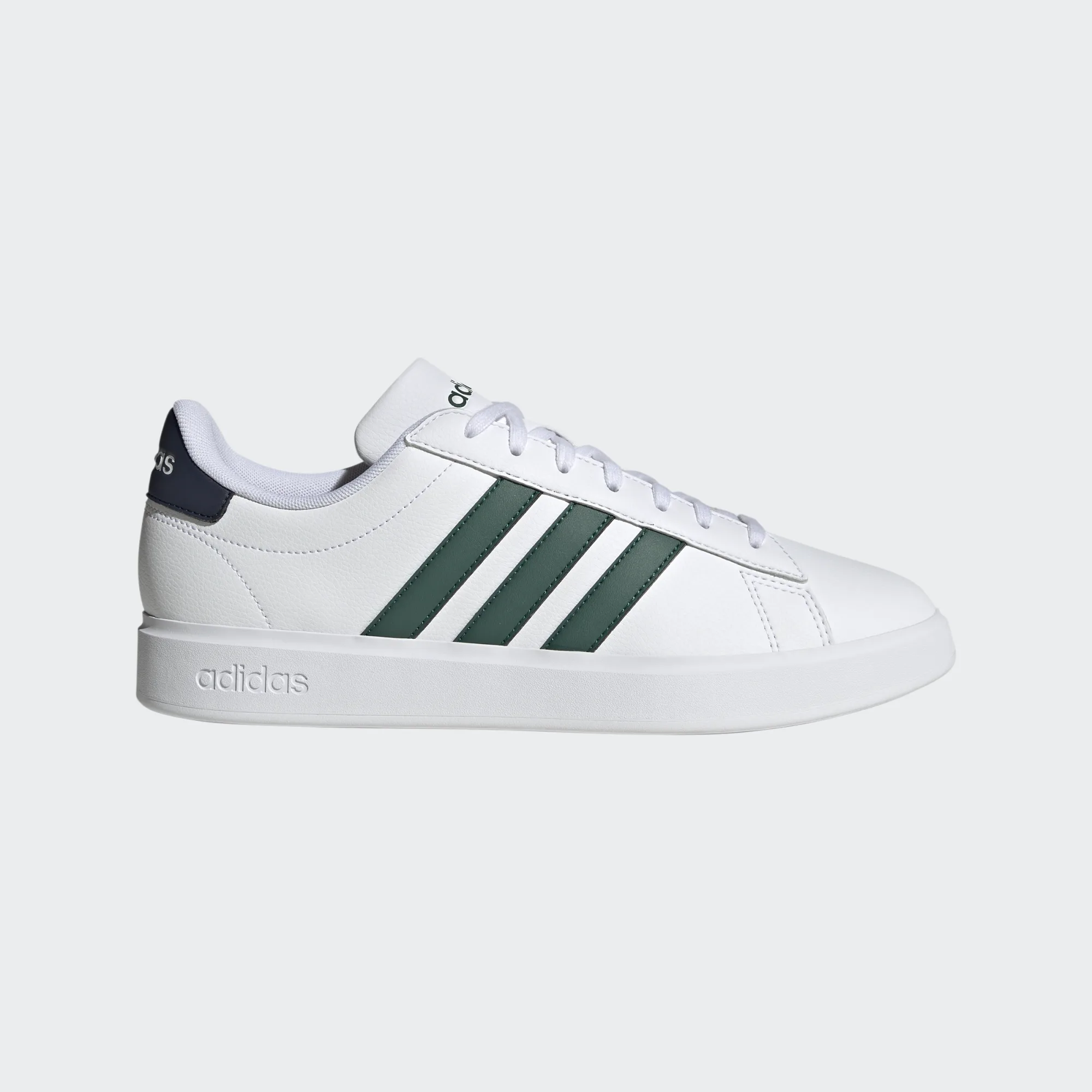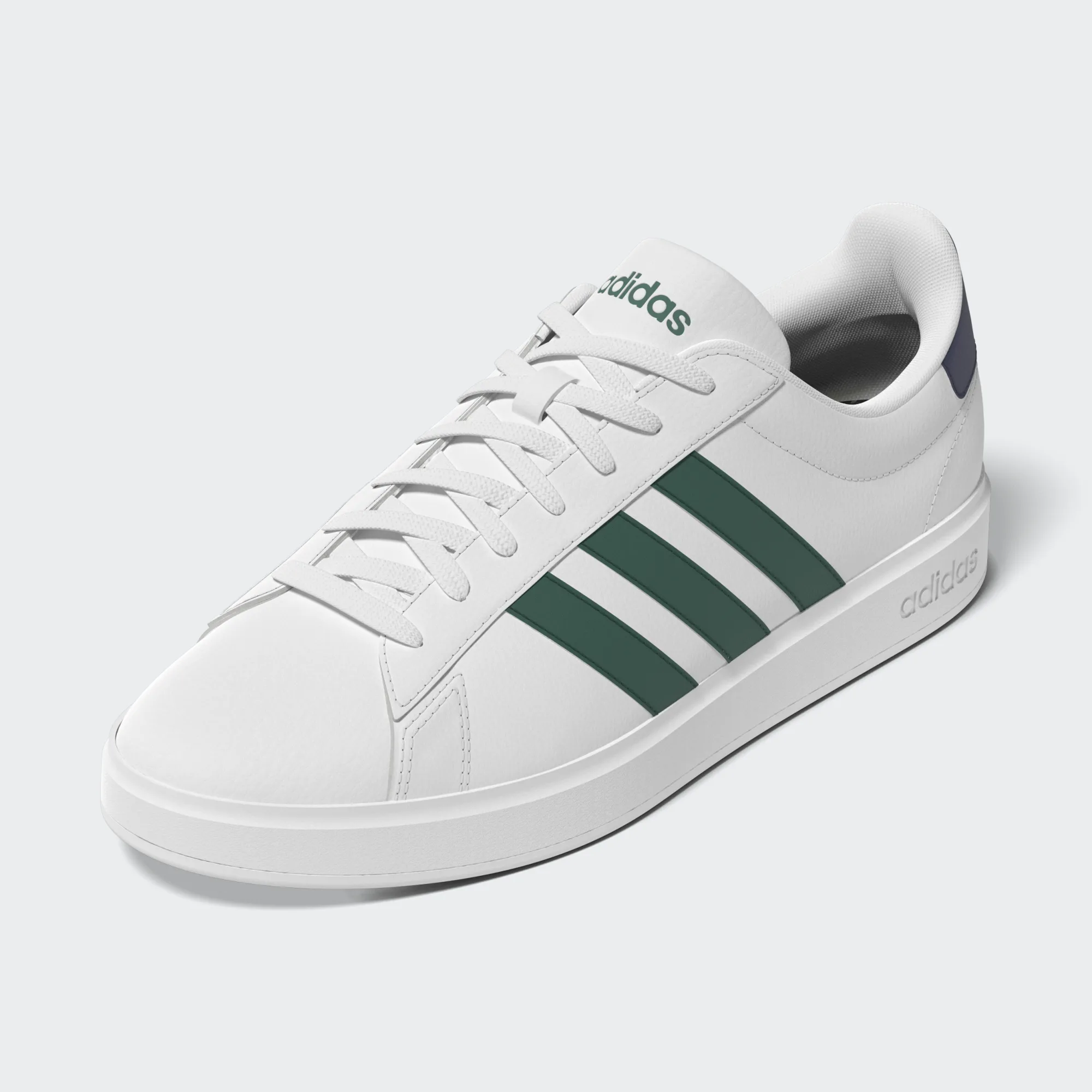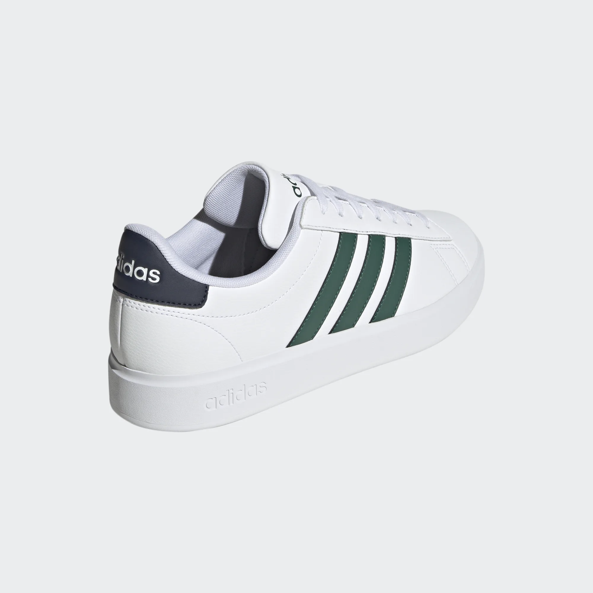 Une icône adidas. Ces chaussures inspirées du tennis pour hommes ont une tige en cuir synthétique durable et une semelle intérieure Cloudfoam Comfort pour un amorti optimal. Les 3 bandes au look classique apportent la touche finale.