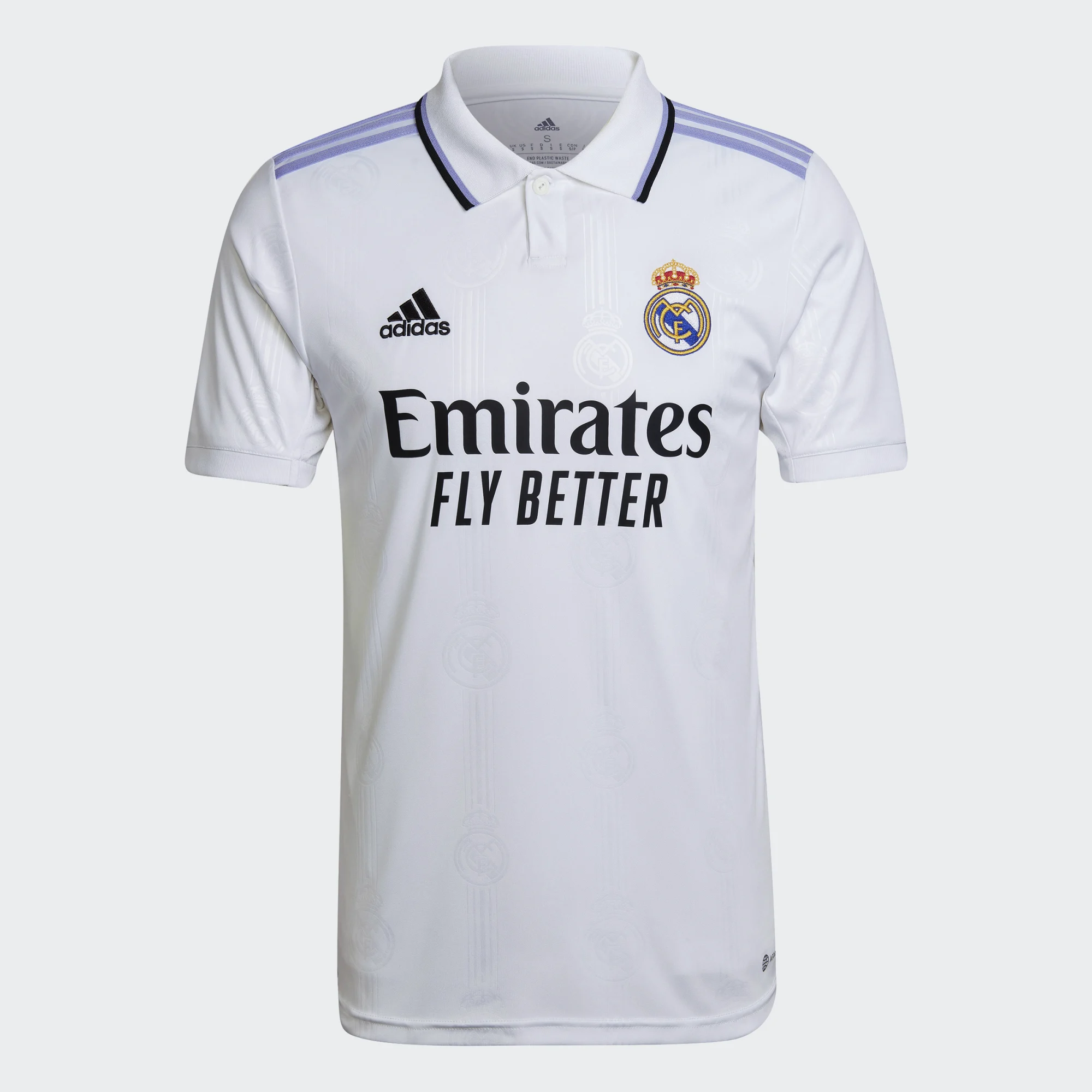 Épuré, classique, créé pour marquer une étape importante. Le look intemporel de ce maillot domicile adidas du Real Madrid est rehaussé de détails violet clair et d'un blason du club en relief répété sur le tissu blanc. Cette version est dotée de la technologie AEROREADY qui évacue la transpiration pour offrir un maximum de confort aux fans.