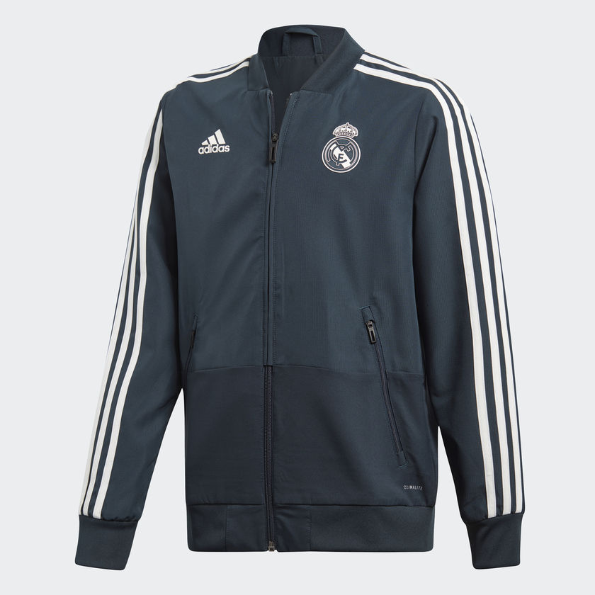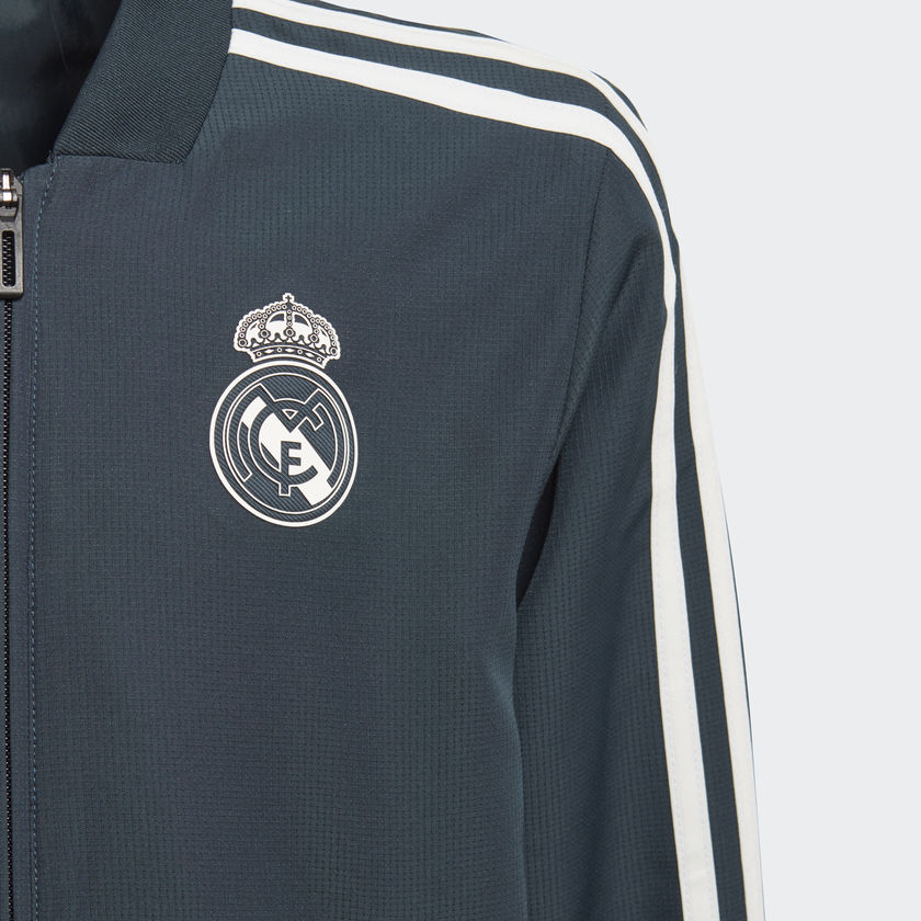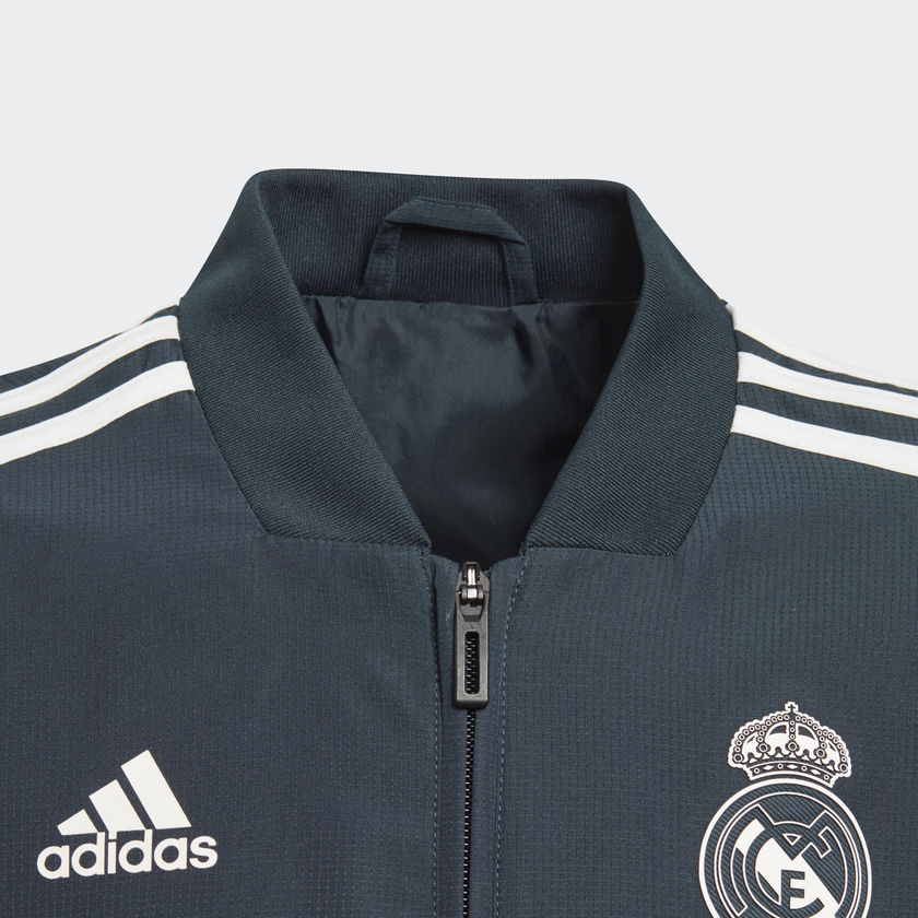 Cette veste de football est inspirée de celle portée par les joueurs du Real Madrid devant la presse. Cette version slim est conçue en ripstop résistant qui évacue la transpiration.