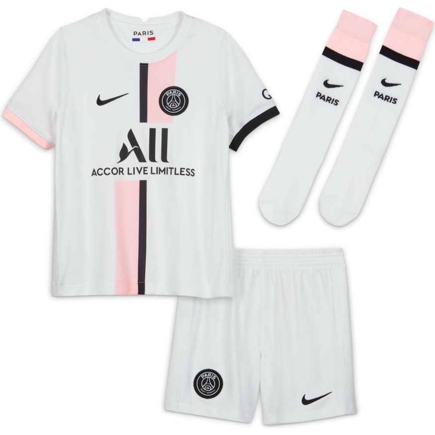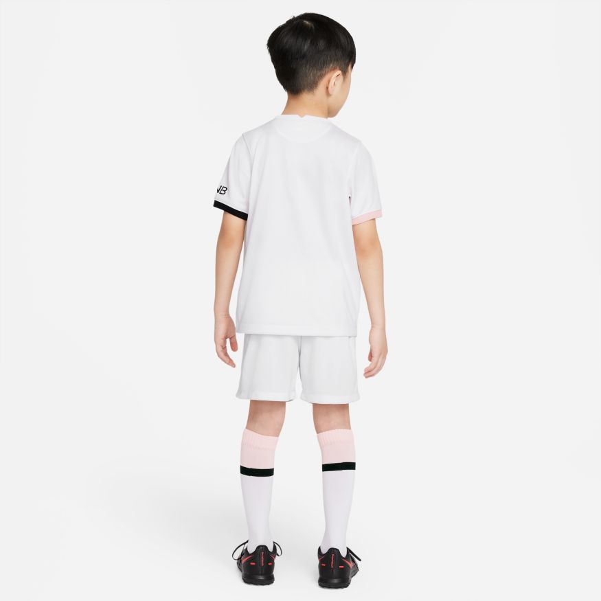 Les futurs champions ont besoin de la tenue assortie. La tenue Paris Saint-Germain Extérieur comprend un maillot, un short et des chaussettes pour un look complet inspiré des plus grands joueurs. Le tissu respirant et doux intègre une action anti-transpiration pour offrir un confort absolu tout au long de la journée.