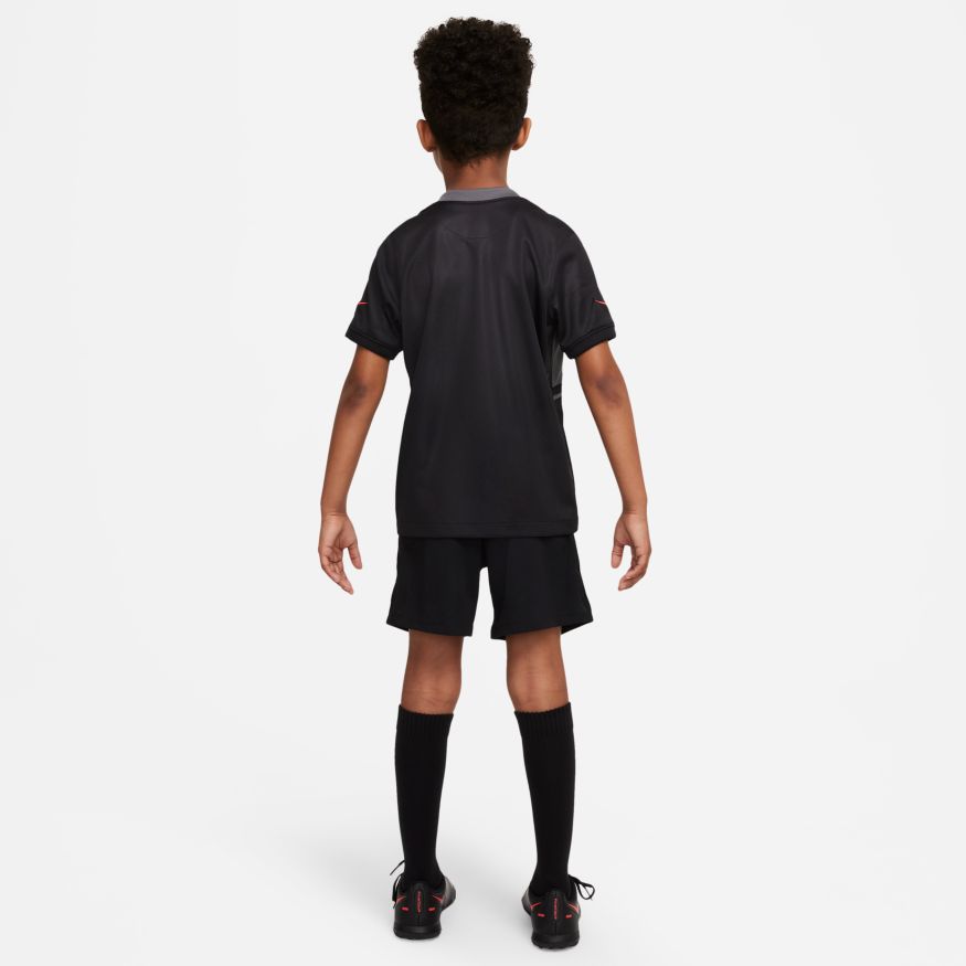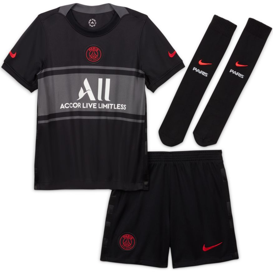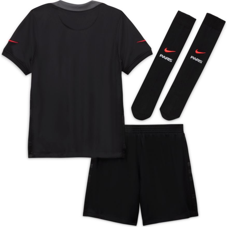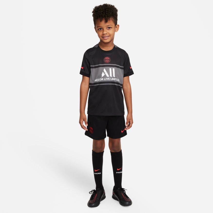 Les futurs champions ont besoin de l'uniforme correspondant. Le Kit Paris Saint-Germain comprend un maillot, un short et des chaussettes pour un look complet inspiré de l'élite. Le tissu respirant est doux et empêche la transpiration de leur peau pour les aider à rester à l'aise. Ce produit est composé d'au moins 75 % de fibres de polyester recyclées.