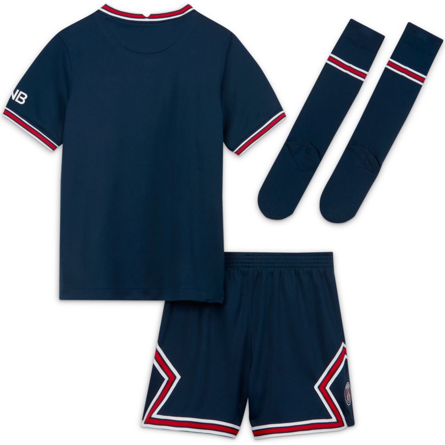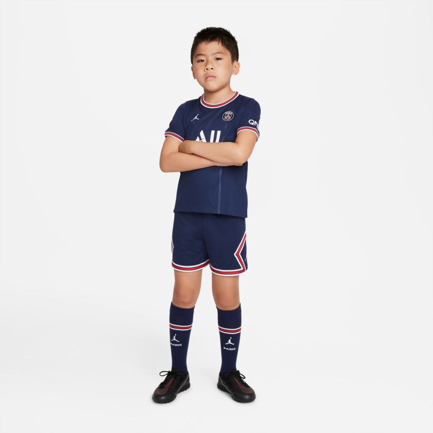 Les futurs champions ont besoin de la tenue assortie. La tenue Paris Saint-Germain Domicile comprend un maillot, un short et des chaussettes pour un look inspiré des plus grands joueurs. Le tissu respirant et doux intègre une action anti-transpiration pour offrir un confort absolu tout au long de la journée.