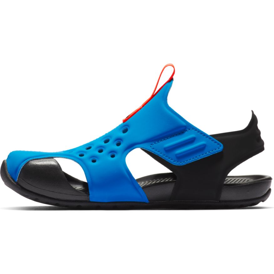 La sandale Nike Sunray Protect 2 (PS) Jeune Garçon assure une protection totale des orteils, et sa semelle extérieure garantit une adhérence idéale pour les moments de jeu en extérieur. Ses brides à scratch aident à l'enfiler et à la retirer facilement, tandis les ouvertures de l'empeigne favorisent l'aération quand les petits pieds se réchauffent.