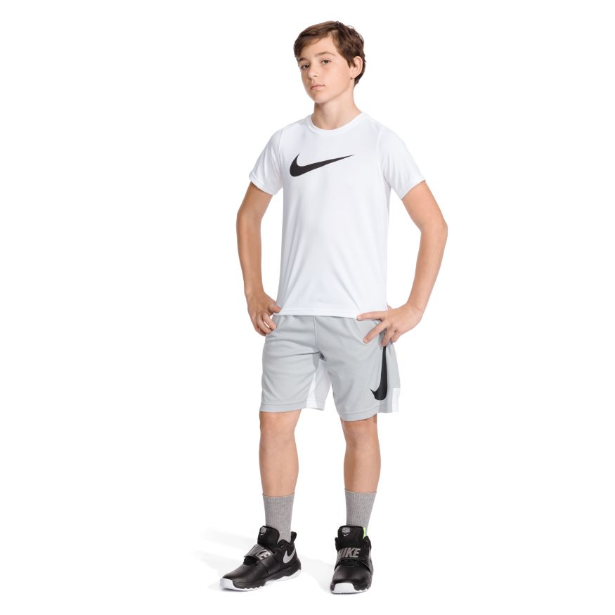 La chaussure de basketball Nike Team Hustle D 8 (GS) pour Garçon présente une empeigne en cuir avec du mesh doublé de mousse pour plus de confort. La bride placée à mi-pied maintient le pied en place, tandis que la semelle intermédiaire en mousse souple offre un excellent amorti de la pointe au talon.