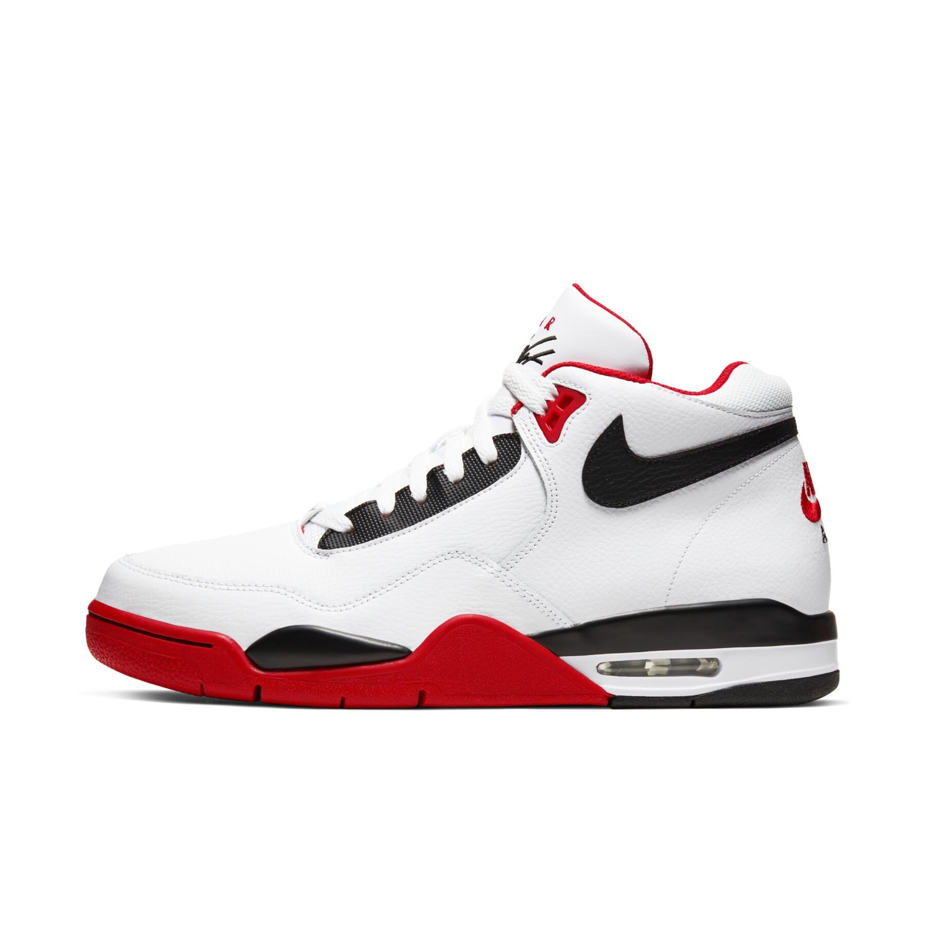 Nike Flight Legacy a été conçue d'après le modèle emblématique Jordan Air Retro 4.Les tiges hautes sont en cuir naturel de bonne qualité. Des lacets solides et un col rembourré assurent stabilité et ajustement.