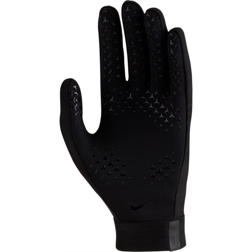 Les gants de football Nike HyperWarm Academy sont conçus pour vous aider à garder vos mains au chaud et à rester concentré sur le jeu. Les paumes texturées offrent une meilleure adhérence au ballon pendant les remises en jeu, tandis que les poignets flexibles assurent un maintien ferme.