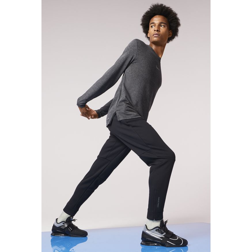 Le pantalon Nike Pro Therma-FIT vous permet d'échapper au froid avant et après vos entraînements ou compétitions par temps frais. Le tissu en molleton doux associé à une respirabilité intégrée vous maintient au chaud, sans en faire trop. Ce produit est fabriqué avec au moins 75 % de fibres de polyester recyclé.