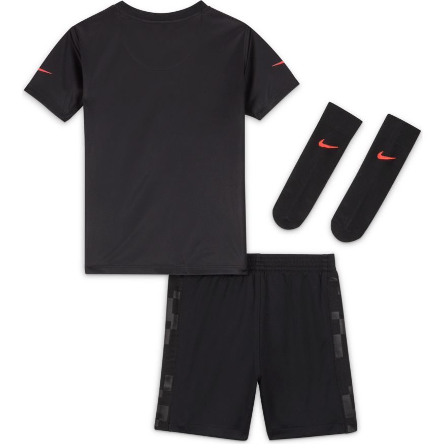 Les futurs champions ont besoin de l'uniforme correspondant. Ce kit exprime l'amour du jeu avec des détails emblématiques du PSG. Le maillot, le short et les chaussettes sont conçus pour le confort dans un look inspiré de l'élite. Ce produit est composé à 100 % de fibres de polyester recyclées.