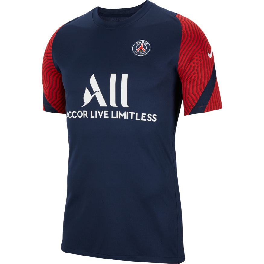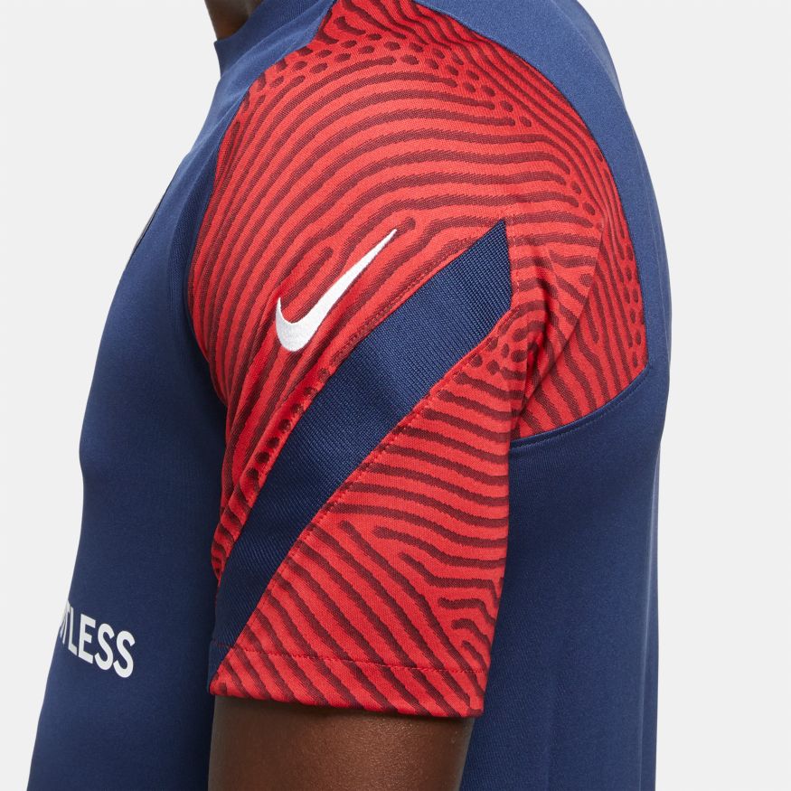 Le haut Strike du Paris Saint-Germain est conçu pour vous permettre de rester au frais et au sec sur le terrain. La technologie anti-transpiration s'active lorsque le match s’intensifie et le mesh dans le dos favorise la circulation de l’air.