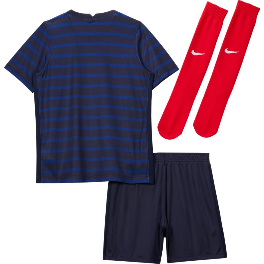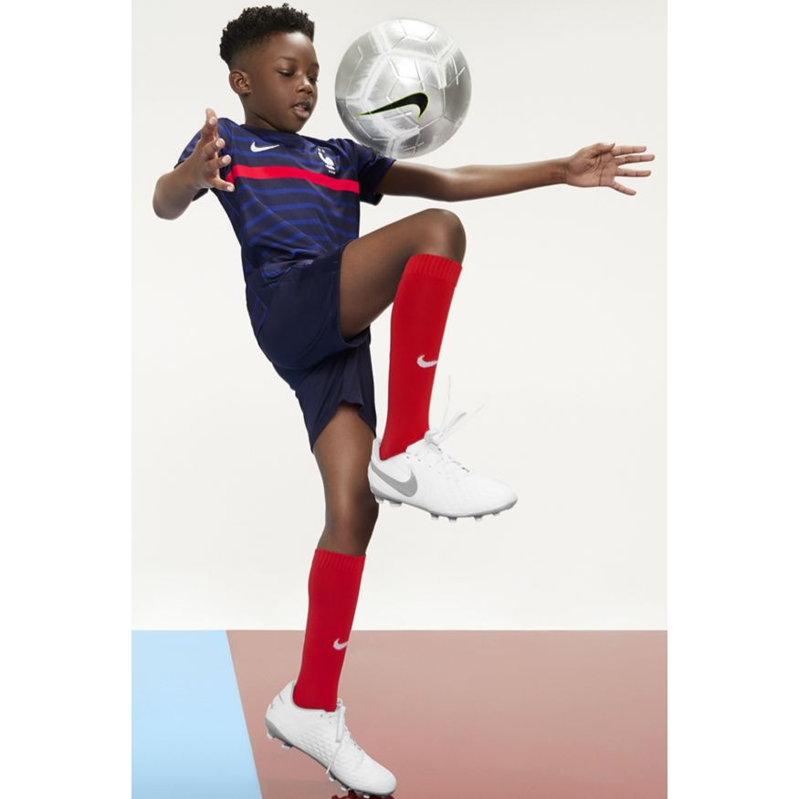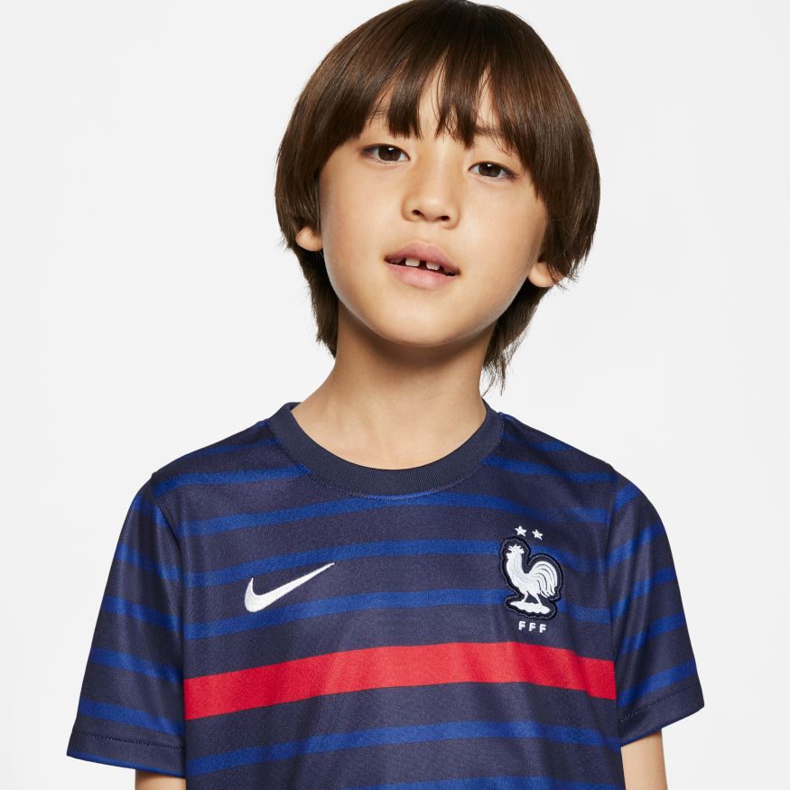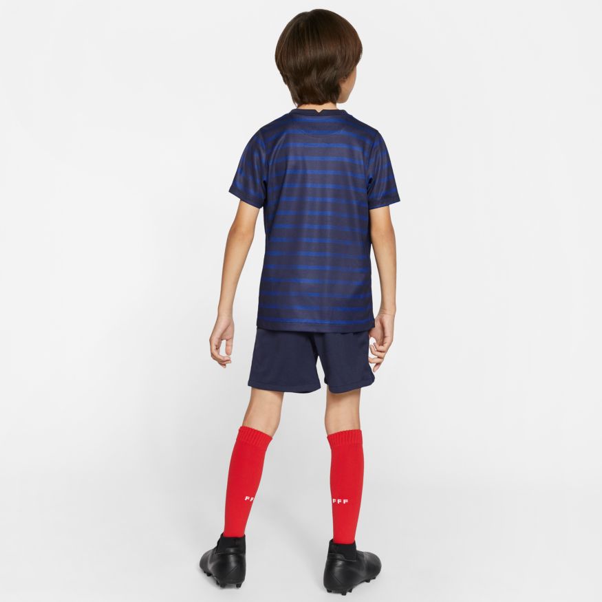 Les futurs champions ont besoin de la tenue qui correspond à leur potentiel. Confectionnée dans un tissu respirant, la tenue FFF Home comprend un maillot, un short et des chaussettes conçus pour lui offrir un confort absolu dans un look inspiré des plus grands joueurs.