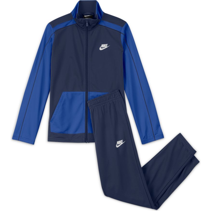 Le survêtement Nike Sportswear Futura fusionne le modèle de course rétro à une tenue tout-en-un. Ce combo classique associe une veste à zip et un pantalon doux et confortable pour jouer dehors ou simplement traîner avec ses amis. Assortis ou dépareillés, c'est vous qui décidez.