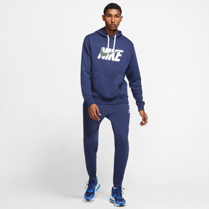 Le survêtement Nike Sportswear associe un tissu en Fleece brossé doux et des poignets et des ourlets côtelés, pour une tenue d'un confort absolu. Des motifs audacieux s'associent pour un look total de haut en bas.