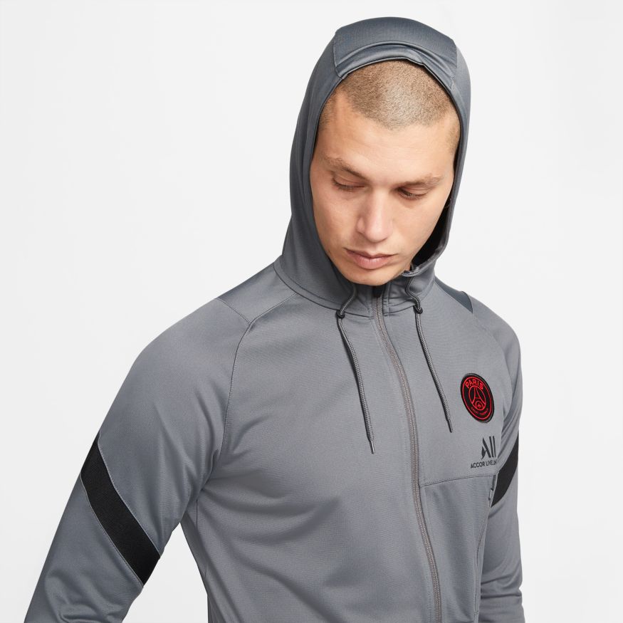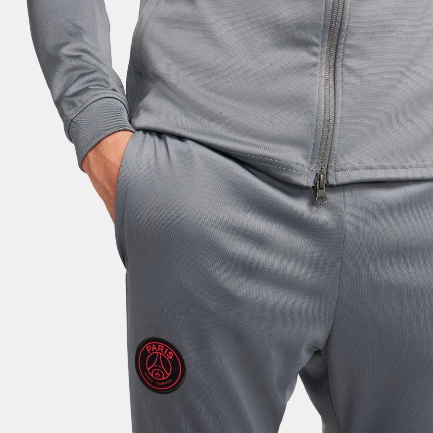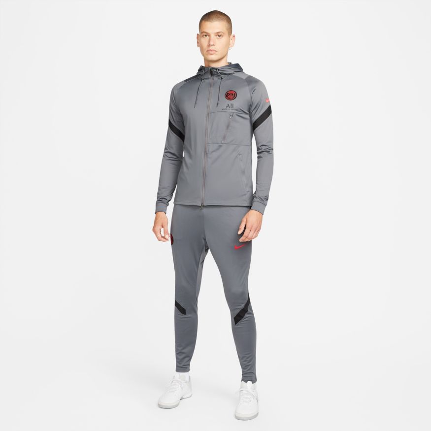 Le survêtement Paris Saint-Germain Strike est confectionné dans un tissu anti-transpiration légèrement extensible pour vous permettre de rester au sec tout en bénéficiant d'un maximum de confort. Les zips en bas des jambes permettent de vous changer facilement sans avoir à enlever vos chaussures. Les poches à zips sur la veste et le pantalon assurent un rangement sécurisé pour vos affaires.