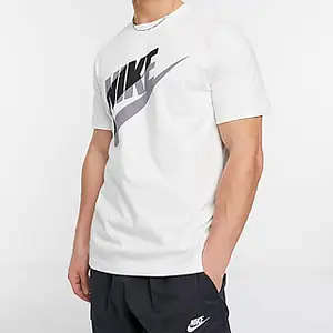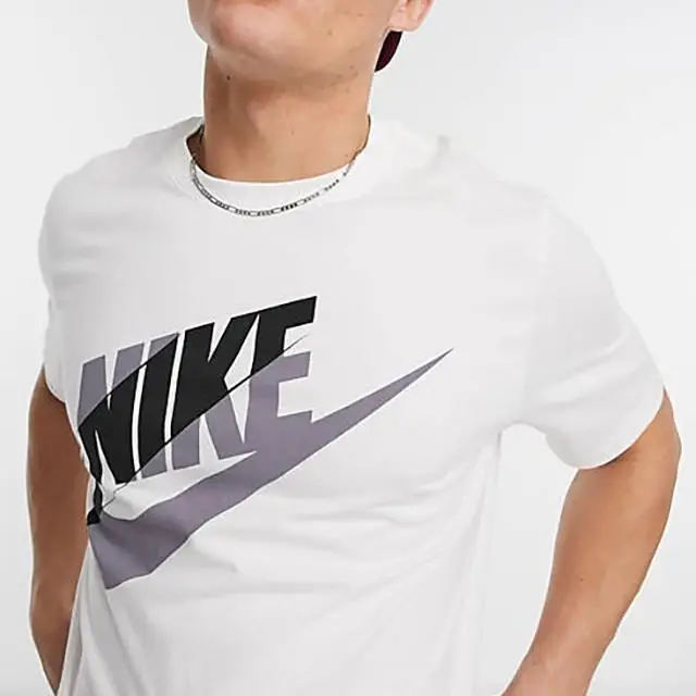 T-shirt Nike Air Block Futura Logo - T-shirt blanc pour homme avec imprimé Nike noir et gris sur la poitrine. Fabriqué en 100 % coton doux. La coupe standard classique offre un confort au quotidien. Le T-shirt est idéal pour un usage quotidien et sportif.