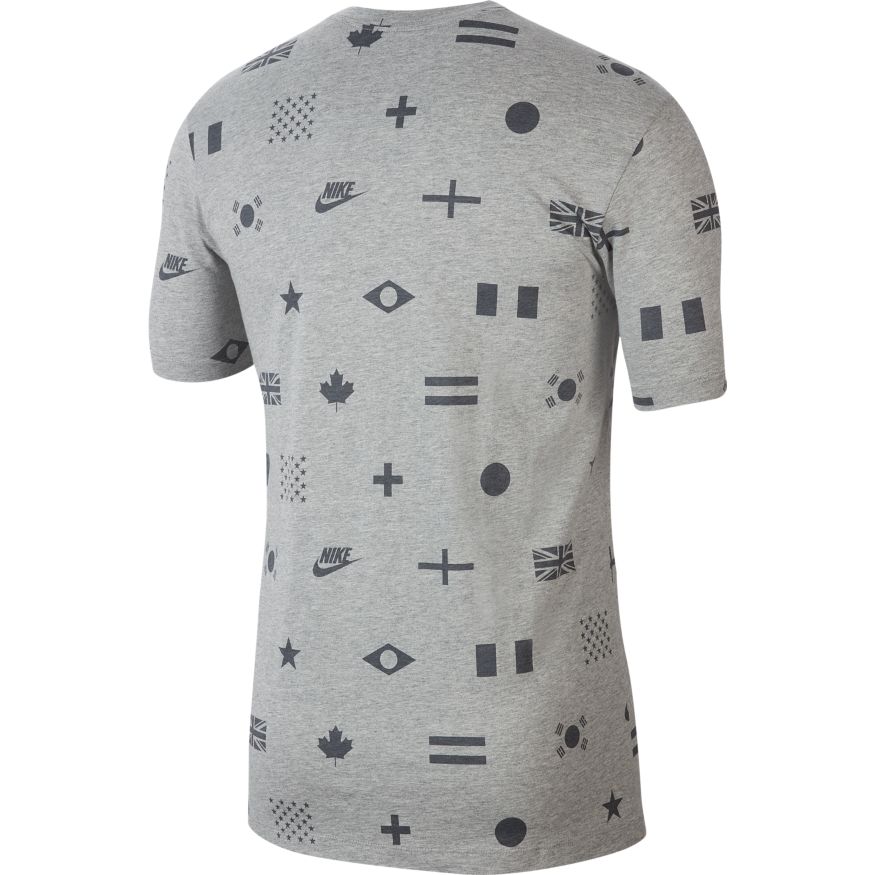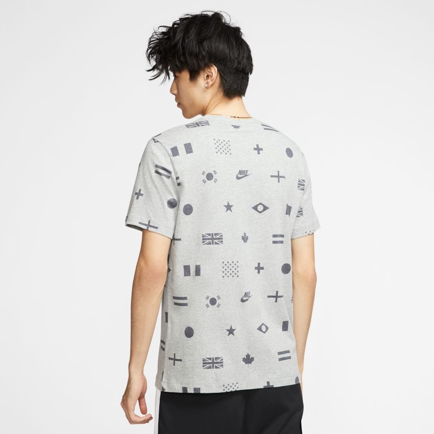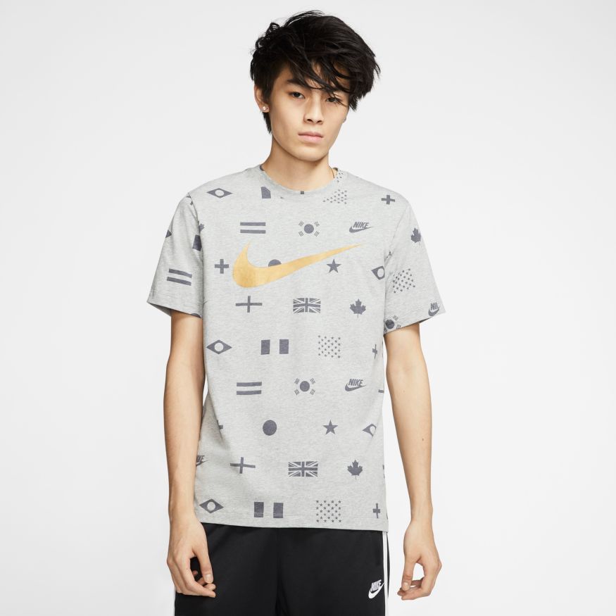 Conçu en coton doux, le tee-shirt Nike Sportswear arbore un logo Swoosh doré emblématique et un imprimé intégral représentant les drapeaux du monde entier.