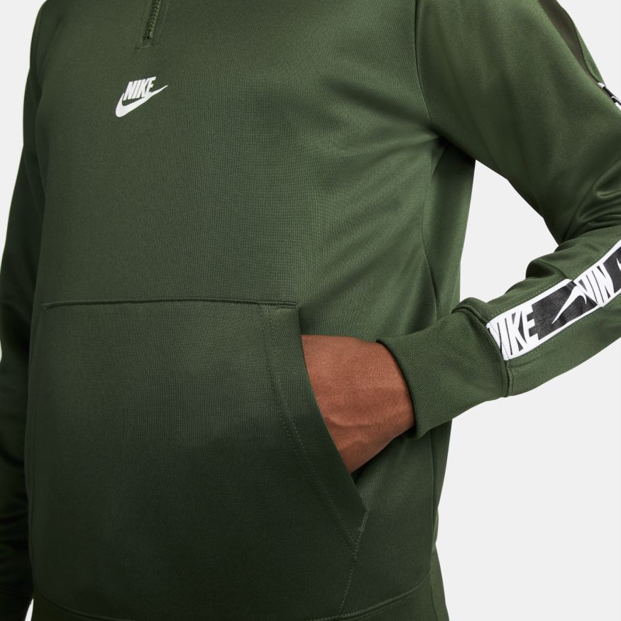 Restez élégant et simple avec le haut Nike Sportswear. Le tissu à double maille vous aide à rester au chaud et à l'aise, tandis que la bande sur les manches avec les graphismes Swoosh répétés et le lettrage Nike donnent à votre look une finition inspirée de la piste. Ce produit est composé d'au moins 75 % de fibres de polyester recyclées.