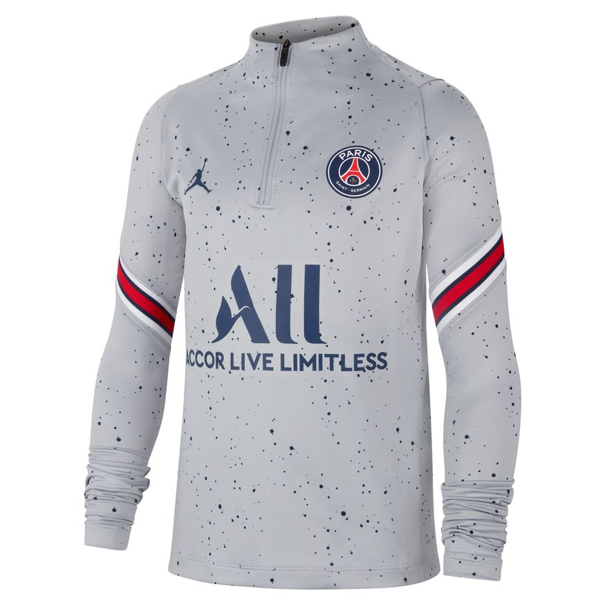 Le 4e haut Jordan x Paris Saint-Germain Strike présente des détails spécialement adaptés aux étoiles montantes du football. Avec sa coupe ajustée et profilée, rien ne s'interpose entre vous et le ballon, tandis que le tissu anti-transpiration vous apporte de la fraîcheur pour laisser parler votre talent.