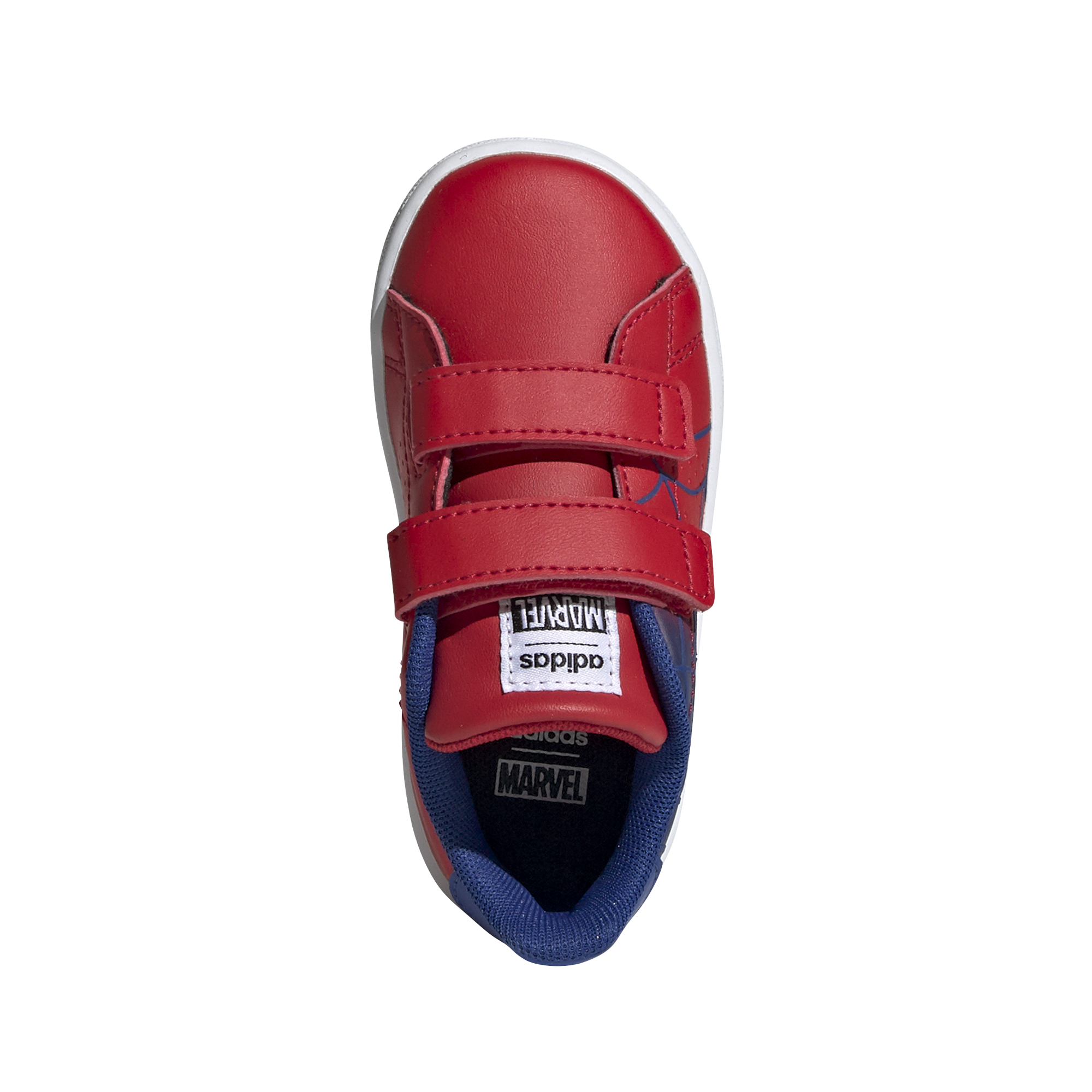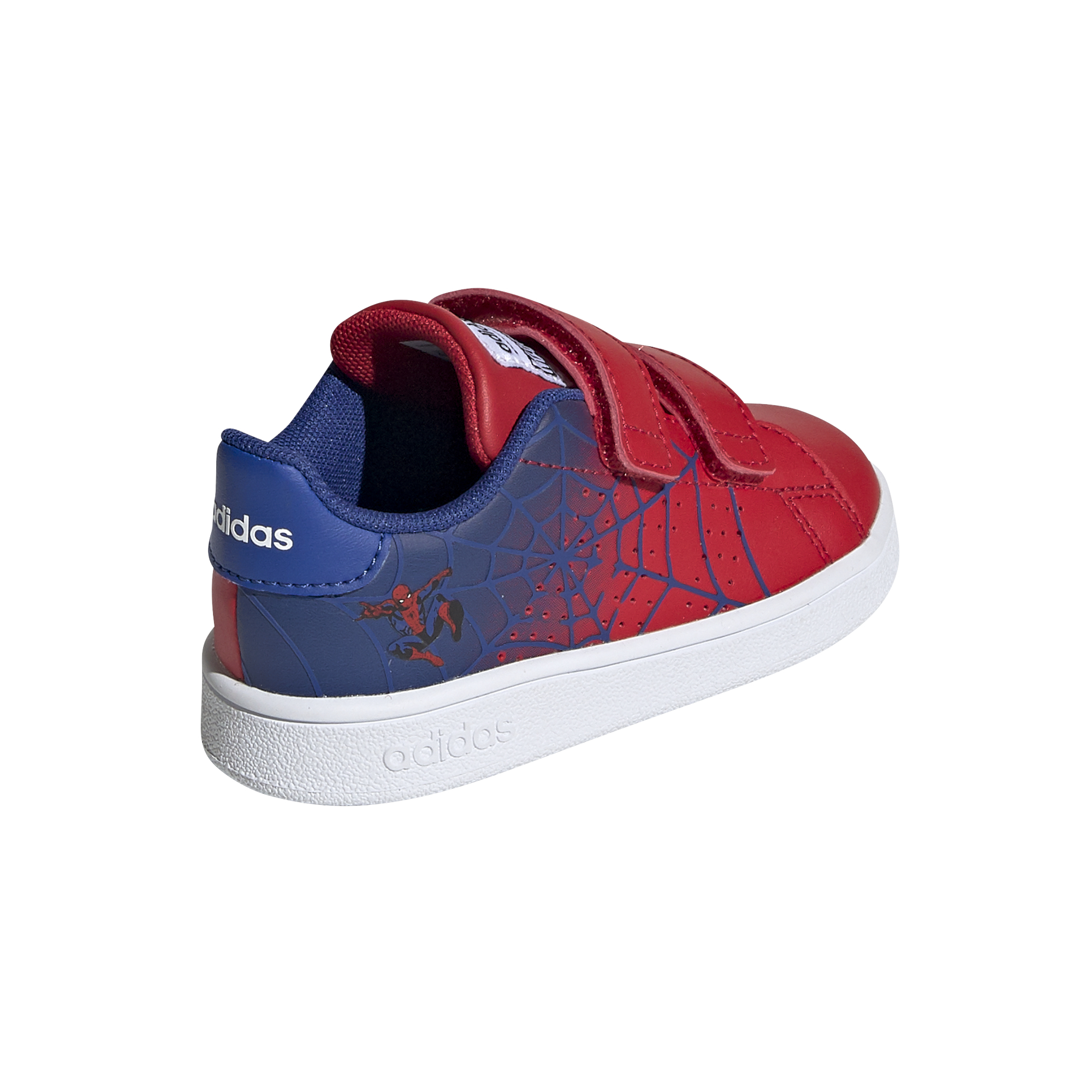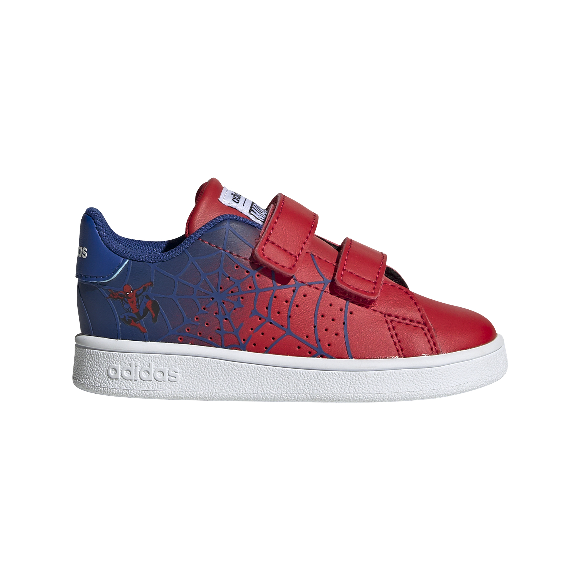 Le style inspiré du tennis amène le croisé palmé à de petits pieds. La partie supérieure en cuir synthétique sur les chaussures de ces nourrissons a crochet-et-boucle fermetures pour facile sur et en dehors et dispose d'un graphique Spider-Man.